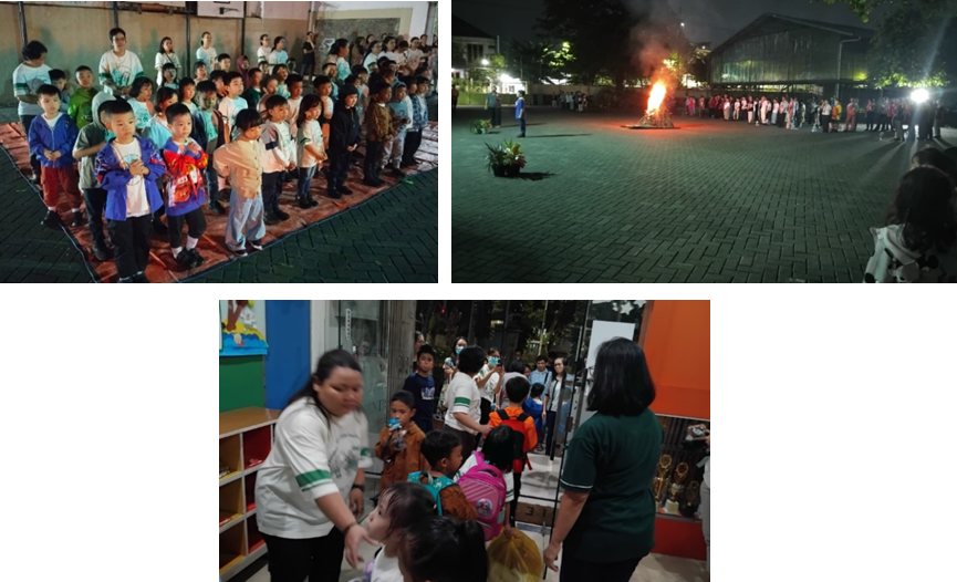 Sebagai penutup, kegiatan Pra-Siaga diakhiri dengan api unggun bersama kakak penggalang dari SD. Suasana menjadi semakin meriah dengan penampilan anak-anak yang penuh percaya diri. Kegiatan hari itu tidak hanya memberikan kesenangan, tetapi juga melatih kemandirian, keberanian, serta kebersamaan dalam diri setiap anak.