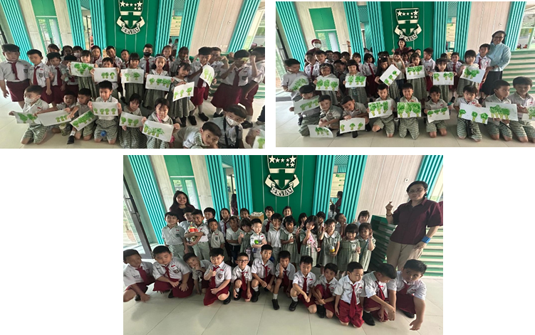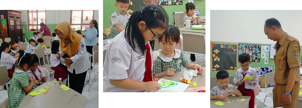 Pada bagian kreatif, setiap kelompok melakukan finger painting berbentuk brokoli di bawah bimbingan siswa kelas 1 SD. Kakak-kakak membantu menyiapkan bahan, memberi contoh, dan memuji usaha adik-adik sehingga keterampilan motorik halus dan ekspresi seni anak TK berkembang. Sesudah kegiatan kreatif, anak-anak diajak berkeliling seluruh lingkungan sekolah—mengunjungi ruang kepala sekolah, tata usaha, ruang guru, berbagai kelas, laboratorium, dan ruang doa—sebagai pengenalan suasana dan tata tempat sehingga anak TK lebih akrab dengan lingkungan baru.