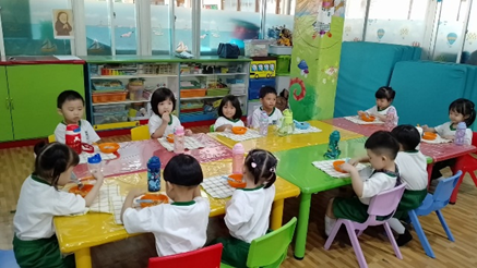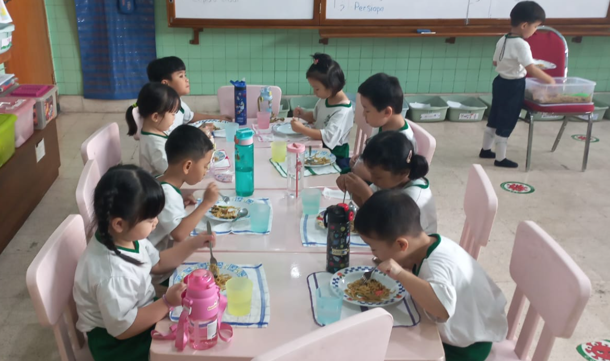 Kegiatan makan bersama di KBTK Santa Maria bukan hanya sekadar makan, tetapi juga mengajarkan anak-anak untuk bersyukur atas makanan yang diterima, membiasakan perilaku makan yang baik, serta mempererat kebersamaan antar sesama teman.