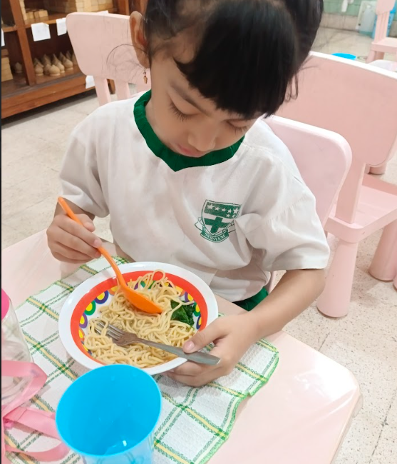 Surabaya, Kampus Ursulin – Sanmaris — Pada hari Jumat ini, 14 November, anak-anak KBTK Santa Maria selalu menantikan kegiatan makan bersama yang menjadi salah satu momen paling menyenangkan bagi mereka. Kegiatan ini tidak hanya menjadi waktu untuk makan, tetapi juga kesempatan bagi anak-anak untuk belajar kemandirian, berbagi, dan mengembangkan kebiasaan makan yang baik. Menu makan pun selalu berbeda setiap minggunya, sehingga membuat anak-anak semakin penasaran. Tidak heran jika setiap Jumat pagi mereka antusias bertanya, “Bu, hari ini makannya apa?”
