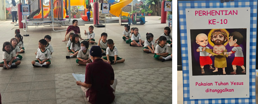 Melalui pengalaman ini, anak-anak tidak hanya belajar tentang kisah sengsara Yesus, tetapi juga dilatih untuk bersikap sabar, tekun, dan mampu berjalan dalam kebersamaan. Kegiatan Ibadat Jalan Salib ini menjadi momen berharga dalam menanamkan nilai-nilai iman dan karakter positif sejak dini.
