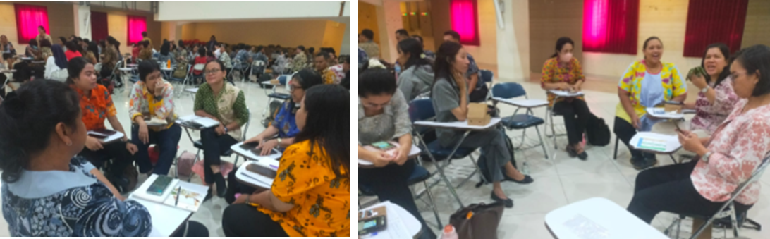 Memasuki sesi inti, suasana menjadi sangat interaktif saat dua narasumber dari unit SMA, Ibu Nike dan Bapak Ruslan, berbagi wawasan praktis. Keduanya membedah potensi Generative AI (GenAI) yang dapat mempermudah pekerjaan administratif guru hingga merancang materi ajar yang lebih personal bagi siswa. Dengan gaya penyampaian yang ringan dan mudah dipahami, para peserta diajak langsung mempraktikkan cara memanfaatkan teknologi ini agar proses belajar-mengajar menjadi lebih efisien tanpa kehilangan nilai-nilai pendidikan yang utama.