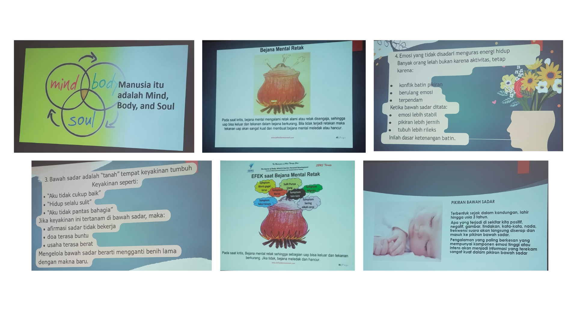 Peserta juga diajak memahami bahwa momen setelah bangun tidur merupakan "waktu emas" karena pikiran berada pada gelombang alfa-theta, yaitu kondisi saat bawah sadar lebih terbuka menerima sugesti positif. Pada saat inilah afirmasi dan penanaman niat baik sangat efektif dilakukan. Sebaliknya, peserta diingatkan untuk berhati-hati terhadap asupan negatif seperti berita yang menimbulkan kecemasan, keluhan berulang, gosip, maupun kata-kata kasar, karena bawah sadar menyerapnya tanpa filter.
