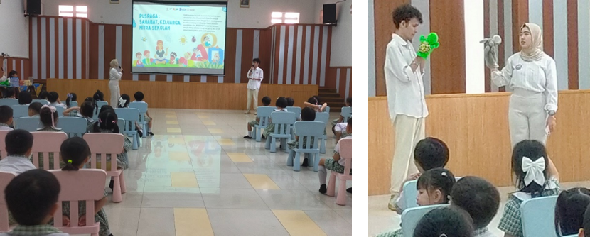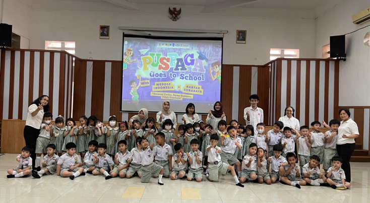 Surabaya, Kampus Ursulin-Sanmaris – TK Santa Maria Surabaya menjadi salah satu sekolah yang mendapat kunjungan edukatif dalam kegiatan PUSPAGA Goes To School. Kegiatan ini terlaksana atas kerja sama dengan Wepose dan Karang Taruna pada Rabu, 4 Februari 2026, pukul 09.00–10.45 WIB. Mengusung tema “Bright Future Shield: Menjaga Anak dari Ruang Kelas hingga Ruang Digital”, kegiatan ini bertujuan membekali anak-anak dengan pemahaman dasar tentang cara menjaga diri dan keselamatan tubuh sejak usia dini.