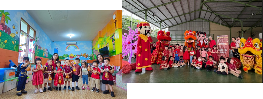 Sejak pagi hari, anak-anak KB dan TK datang mengenakan pakaian bernuansa merah dan busana khas Imlek. Warna merah yang melambangkan sukacita, keberanian, dan harapan baru semakin memperindah perayaan yang sarat makna kebersamaan ini.