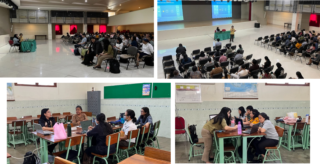 Memasuki sesi inti, para peserta menerima pemaparan penyegaran mengenai pengumpulan dan pengolahan data kuantitatif pada PTK oleh Ibu Imelda dan Ibu Tari dari Universitas Katolik Widya Mandala Surabaya. Para dosen memberikan teknik serta langkah-langkah efektif dalam pengolahan data untuk mendukung kualitas artikel PTK. Kegiatan kemudian dilanjutkan dengan pendampingan di kelas per rumpun, di mana para guru mendiskusikan dan memperbaiki penulisan artikel PTK yang telah disusun, sehingga hasil penelitian dapat dipublikasikan dengan baik dan benar sesuai kaidah ilmiah.